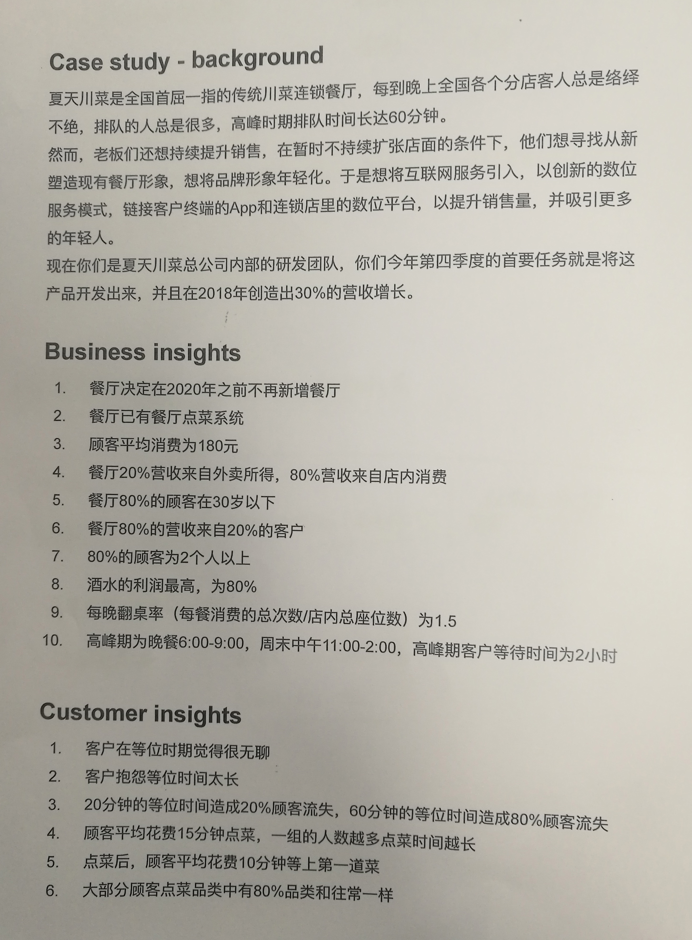 1第一步 老師發(fā)給我們一張紙,講了一個川菜館目前的情況,一些困難,想達(dá)到的目標(biāo)。讓我們先了解現(xiàn)狀和期望。