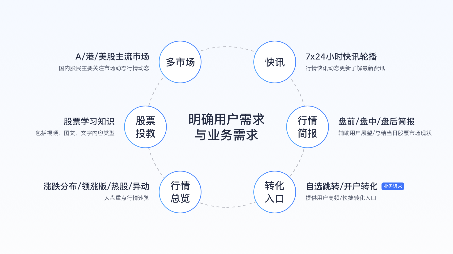 1)不同圈層用戶需求不同,如股票小白、一般散戶、專業(yè)用戶群體,特點(diǎn)不同,需求也不同,充分對(duì)用戶進(jìn)行挖掘、細(xì)分才能更好的理解用戶。