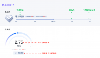 我們要強(qiáng)化商家的等級(jí)感知,通過(guò)視覺和交互引導(dǎo)等方式,強(qiáng)化商家對(duì)等級(jí)感知的重要性和影響。
