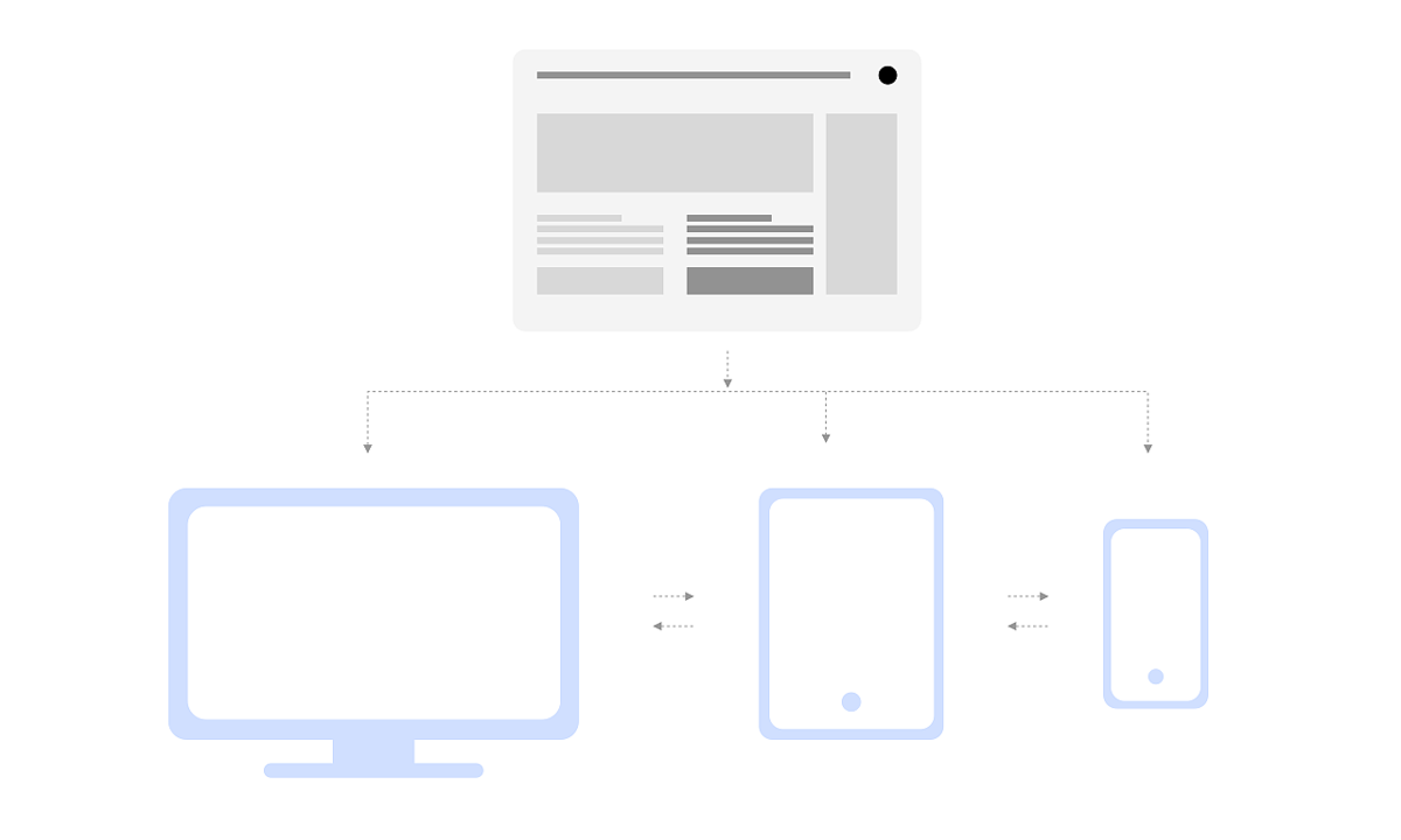 之前我們經(jīng)常利用自適應(yīng)布局的方式來(lái)解決多終端適配的問(wèn)題。而響應(yīng)式與自適應(yīng)時(shí)常被混淆,為更清晰的理解這兩種實(shí)現(xiàn)方式的差異,我們來(lái)概括一下它們之間的區(qū)別: