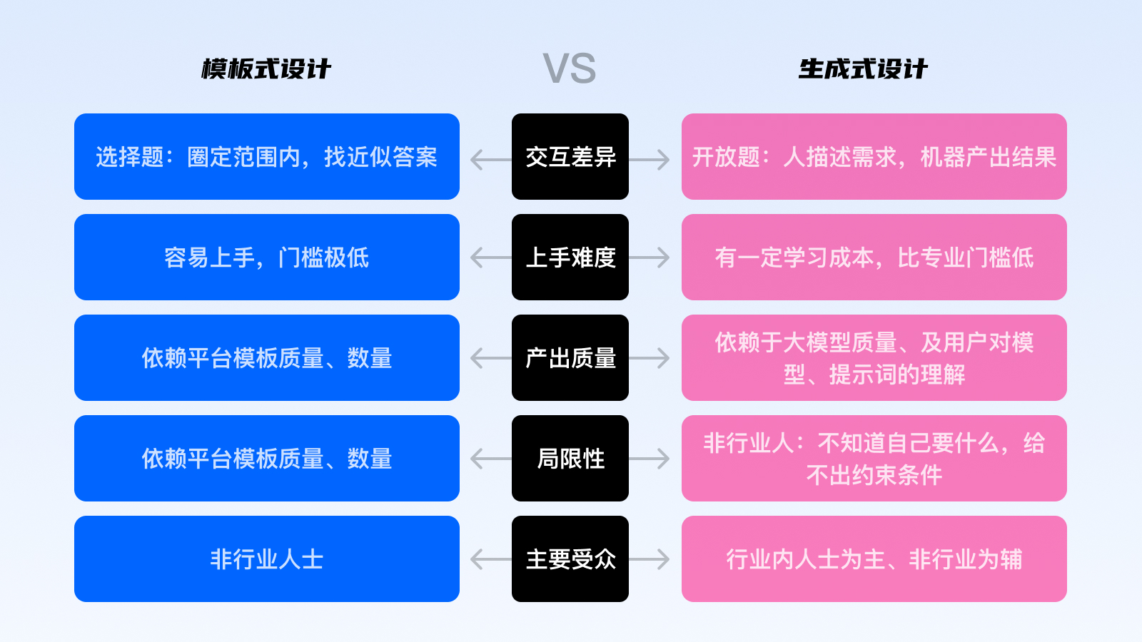 如果不畫(huà)圖就快速的產(chǎn)出,模板式設(shè)計(jì)與生成式AI出圖是擺在面前的兩種選擇,模板式設(shè)計(jì)不算AI,可以當(dāng)做“智能產(chǎn)出”,到底哪個(gè)好,核心差異在哪?