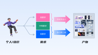僅討論目前的產(chǎn)品,模板式設(shè)計(jì)是非專(zhuān)業(yè)設(shè)計(jì)師的生產(chǎn)工具,生成式AI工具是專(zhuān)業(yè)設(shè)計(jì)師的“外掛”武器。