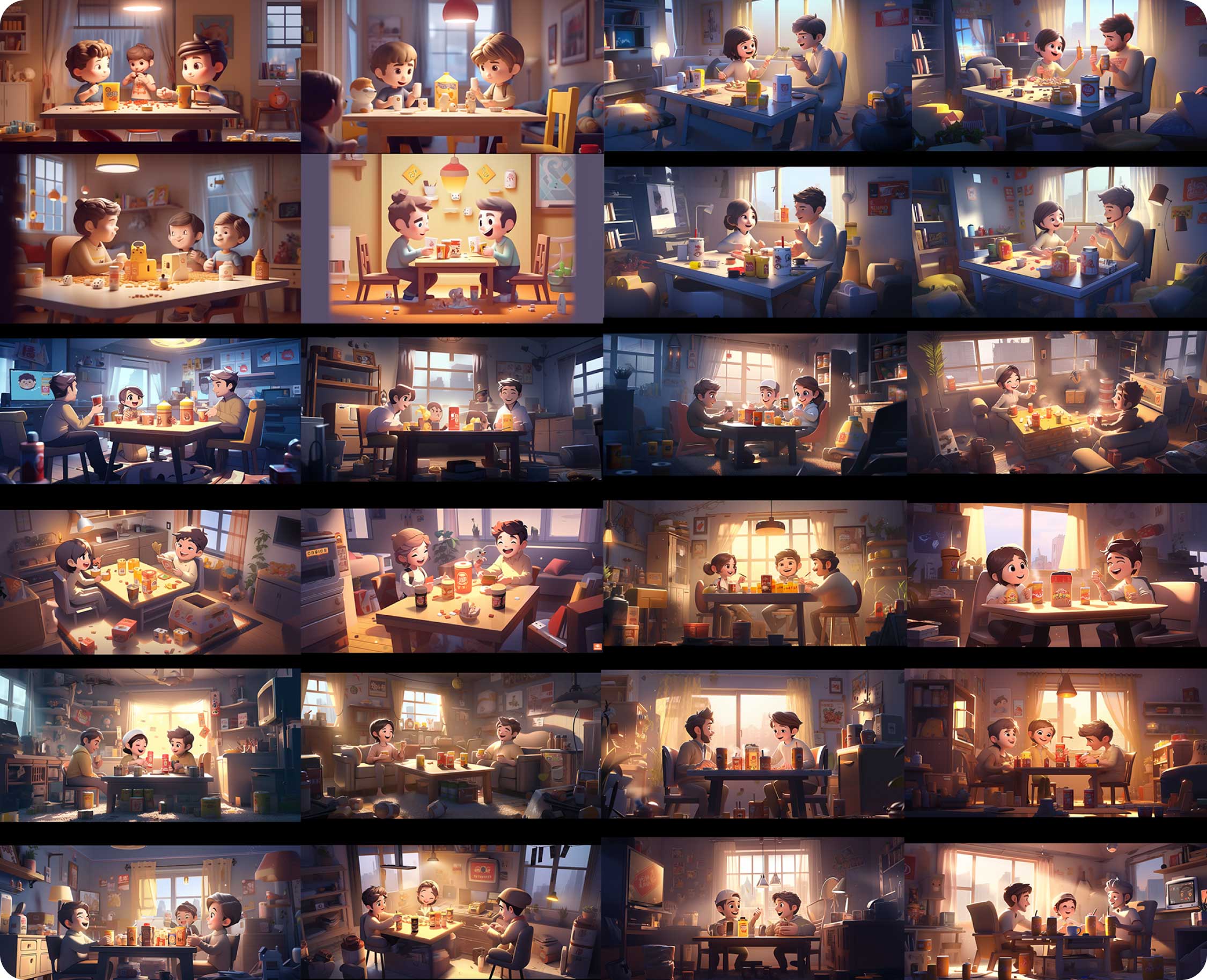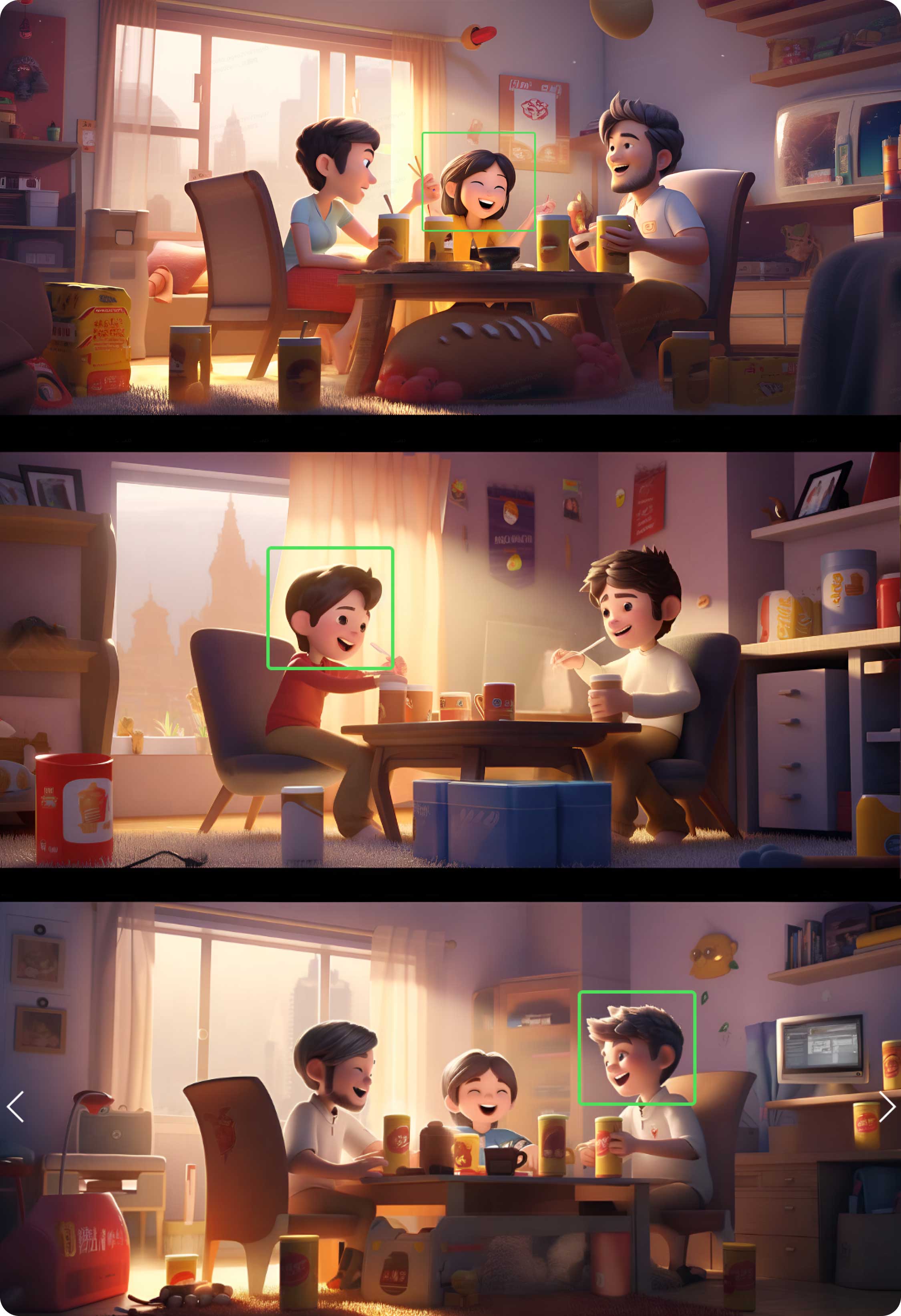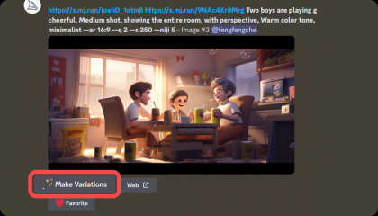 在前期,我們對構(gòu)想的畫面進(jìn)行關(guān)鍵詞的描述:“可愛帥氣的男女孩子們一起玩手機(jī),開心地微笑著,舉起手歡呼,溫暖的房間,大型落地窗?!睂㈥P(guān)鍵詞翻譯后放入Midjourney中進(jìn)行煉圖,最終篩選了幾張氛圍還不錯(cuò)的進(jìn)行下一步操作。