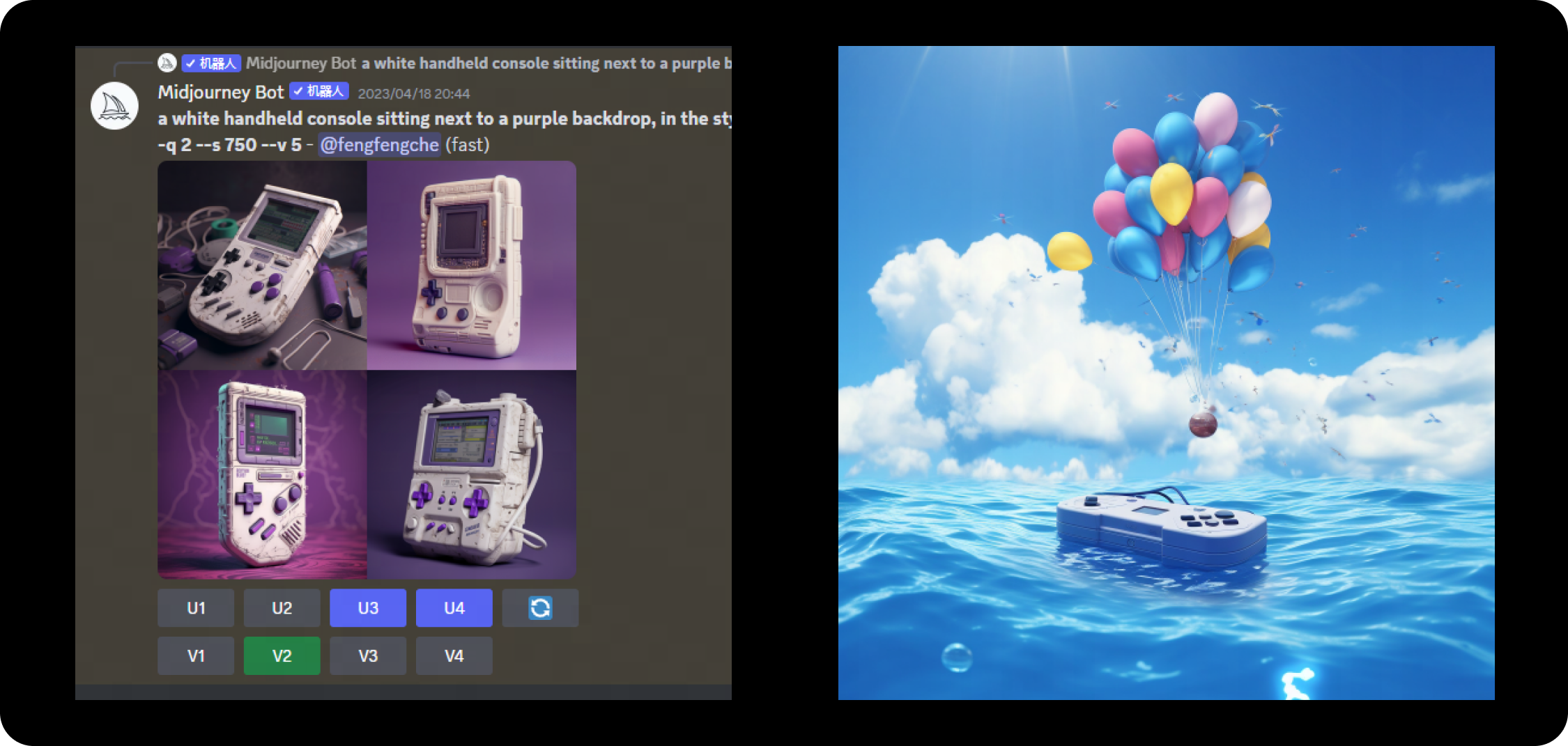 另外,一些零散的部件我們還是可以通過AI快速生成的。例如游戲機(jī)以及手柄,通過Midjourney就可以快速生成。