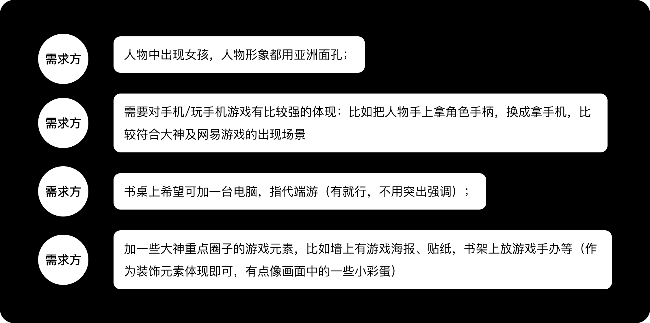 將草圖發(fā)給需求方后,需求方提出了幾個(gè)要點(diǎn)。