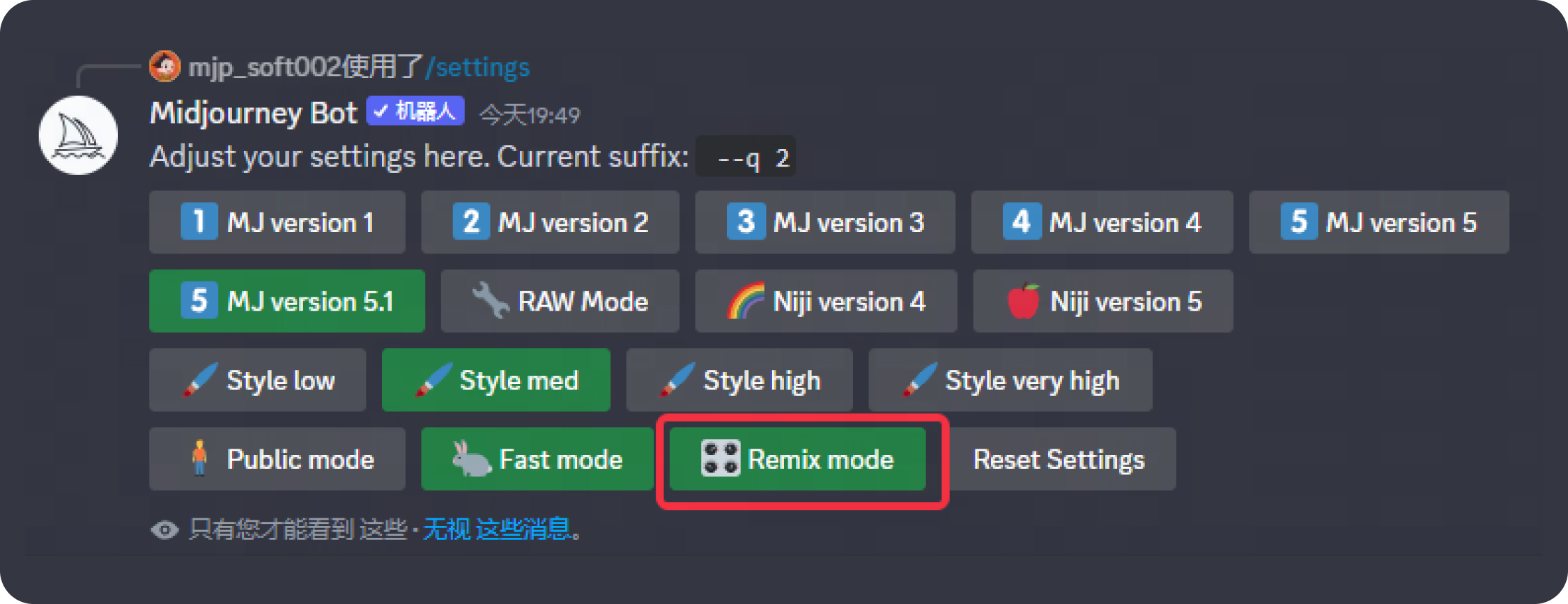 那么如何開啟并使用呢?首先,在對話框中輸入/settings,選擇綠色圖標(biāo):
