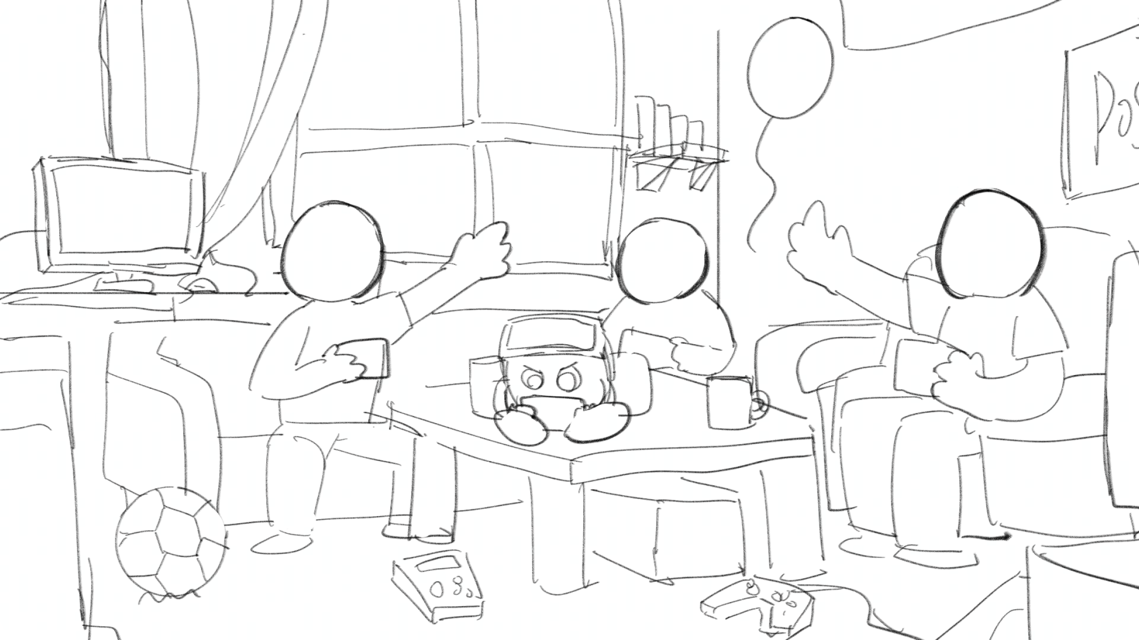 元素上需要加強(qiáng)與主題的關(guān)聯(lián),例如游戲機(jī)、手機(jī)等。光影上,希望畫面明亮一些,可以嘗試在白天的環(huán)境下。視角上,希望加強(qiáng)畫面的透視感,視角也不一定是平視,可以帶一些仰視或者俯視使得畫面更加活潑。