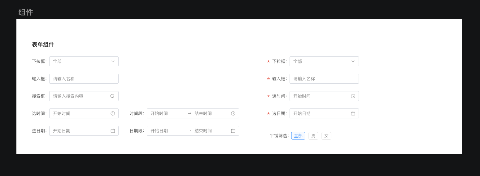 對(duì)表單頁的模塊,布局進(jìn)行一些場景提取,通過對(duì)基礎(chǔ)組件的內(nèi)容拼接形成區(qū)塊化高級(jí)組件,表格組件化,實(shí)現(xiàn)自適應(yīng)、可填充,提高組內(nèi)協(xié)作。