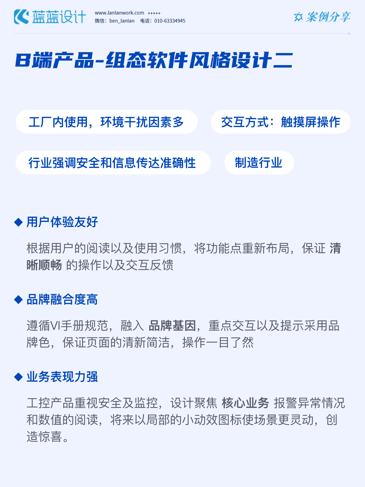 藍藍設(shè)計的兩種組態(tài)軟件風(fēng)格都采用符合當(dāng)下審美潮流的2D插畫效果,既保證了視覺效果美觀的同時也降低落地成本,方便后續(xù)的拓展、修改、提升與設(shè)計效率,同時注重用戶的閱讀習(xí)慣,將原功能點重新布局,主次內(nèi)容對比明顯,降低視覺噪音,保證清晰順暢的操作,提升用戶體驗!