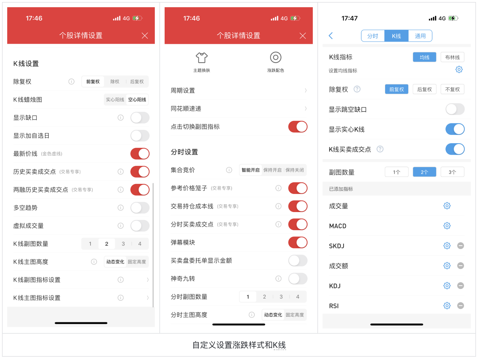 舉個(gè)例子,在個(gè)股詳情K線圖頁(yè)面,上漲用空心圖形表示,下跌用實(shí)心圖形表示,這種方法不僅幫助色盲用戶識(shí)別信息,還增加了視覺(jué)上的吸引力。