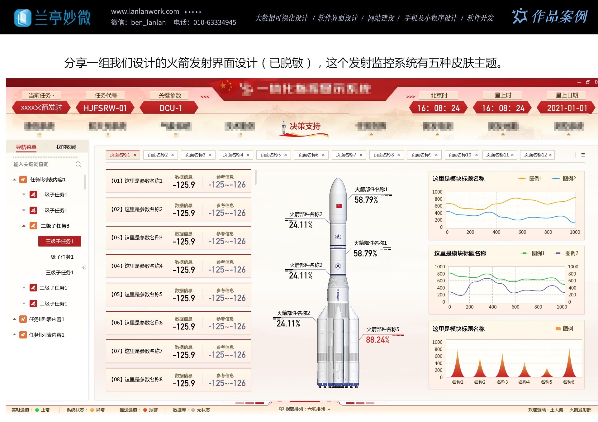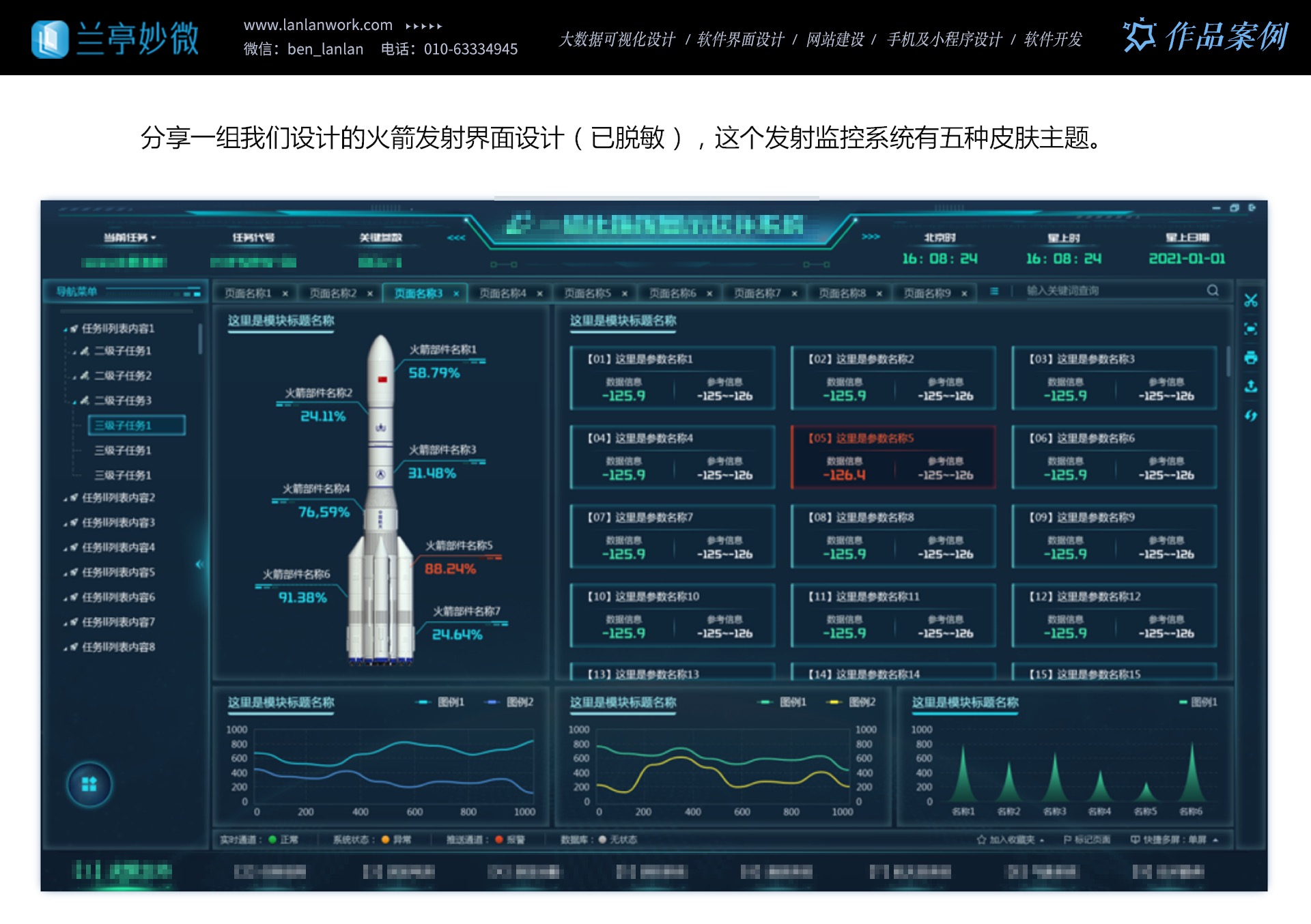 蘭亭妙微的設(shè)計(jì)內(nèi)容廣泛而深入。在戰(zhàn)場(chǎng)態(tài)勢(shì)展示方面,他們運(yùn)用先進(jìn)的可視化技術(shù),將復(fù)雜的戰(zhàn)場(chǎng)信息清晰地呈現(xiàn)給用戶,幫助用戶快速做出決策。在火箭發(fā)射領(lǐng)域,他們?cè)O(shè)計(jì)的界面簡(jiǎn)潔明了,操作流程順暢,確保發(fā)射任務(wù)的順利進(jìn)行。無(wú)人機(jī)、GIS 地圖、信號(hào)源等關(guān)鍵領(lǐng)域也都有他們的精彩設(shè)計(jì)。從交互原型設(shè)計(jì)到視覺(jué)風(fēng)格打造,從功能布局重塑到多維表格應(yīng)用,從 Qt 開發(fā)到 VR 仿真實(shí)訓(xùn),蘭亭妙微全方位服務(wù)于航天軍工產(chǎn)品,為企業(yè)提供一站式的 UI 設(shè)計(jì)解決方案。
