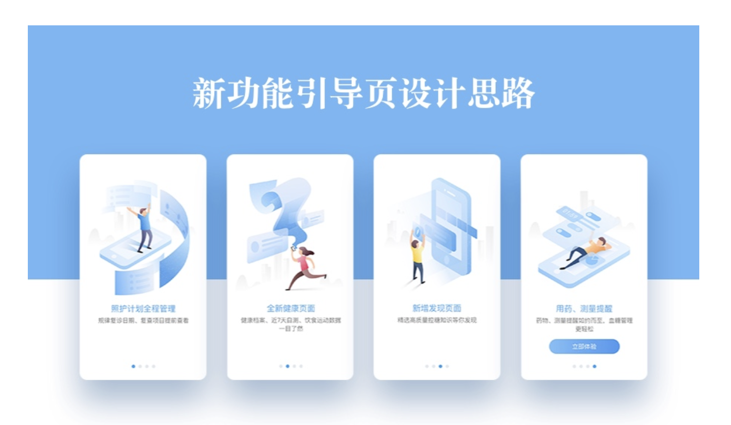 首先要明確新功能是什么。我收到運(yùn)營那邊的文案,主要涉及四個(gè)新功能:一是照護(hù)計(jì)劃全程管理,能讓用戶提前查看規(guī)律復(fù)診日期和復(fù)查項(xiàng)目;二是全新健康頁面,可使健康檔案、近 7 天自測以及飲食運(yùn)動數(shù)據(jù)一目了然;三是新增發(fā)現(xiàn)頁面,里面有精選的高質(zhì)量控糖知識供用戶發(fā)現(xiàn);四是用藥、測量提醒功能,能讓藥物、測量提醒如約而至,讓血糖管理更輕松。