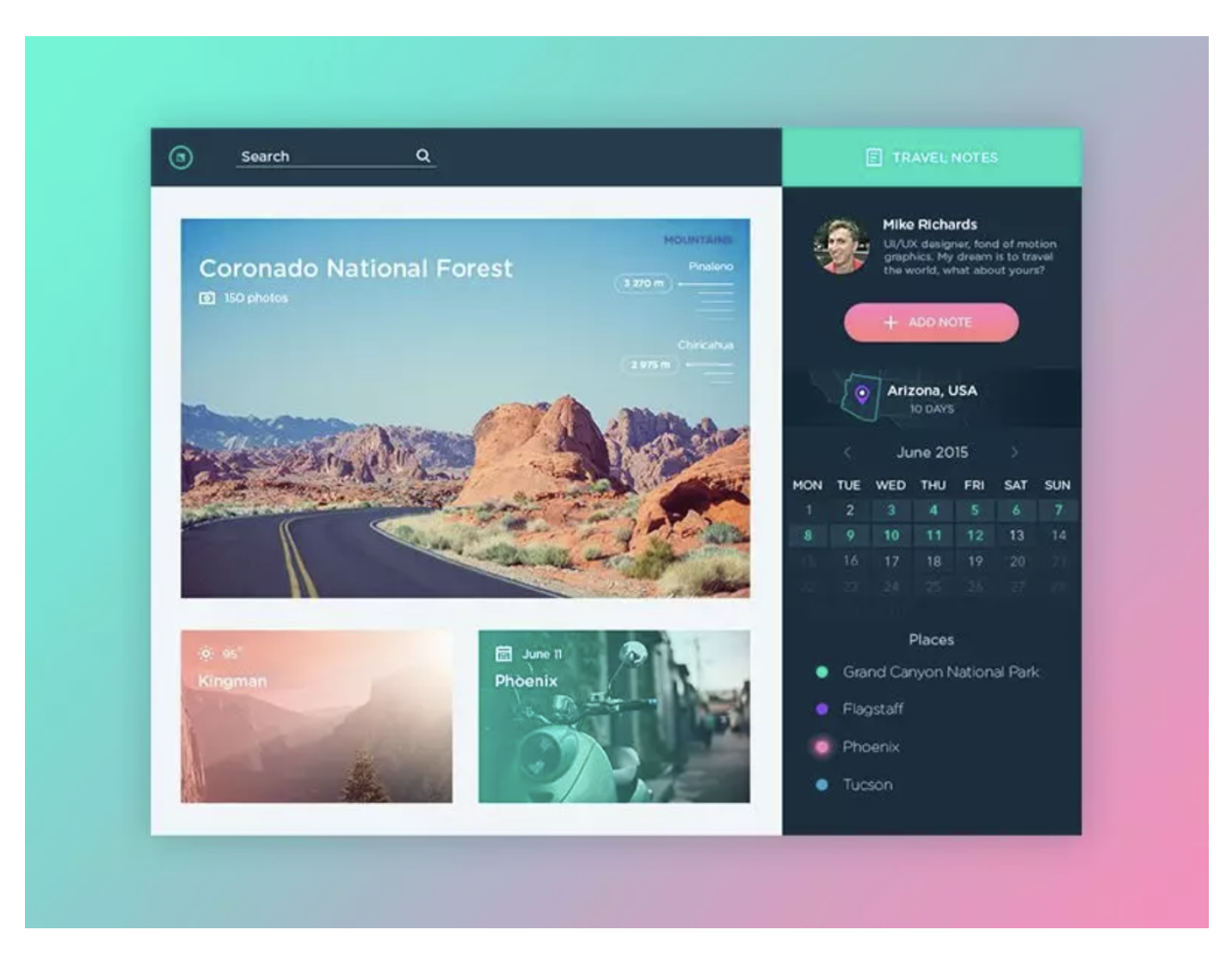 自 2018 年起,漸變成為一種新趨勢,在設(shè)計(jì)中更多地應(yīng)用漸變,能夠增強(qiáng)顏色的感染力。不過,很多設(shè)計(jì)曾傾向于避免使用漸變色,但現(xiàn)在漸變色的潛力越來越大,在設(shè)計(jì)中合理應(yīng)用,反而能為顏色選擇加分。