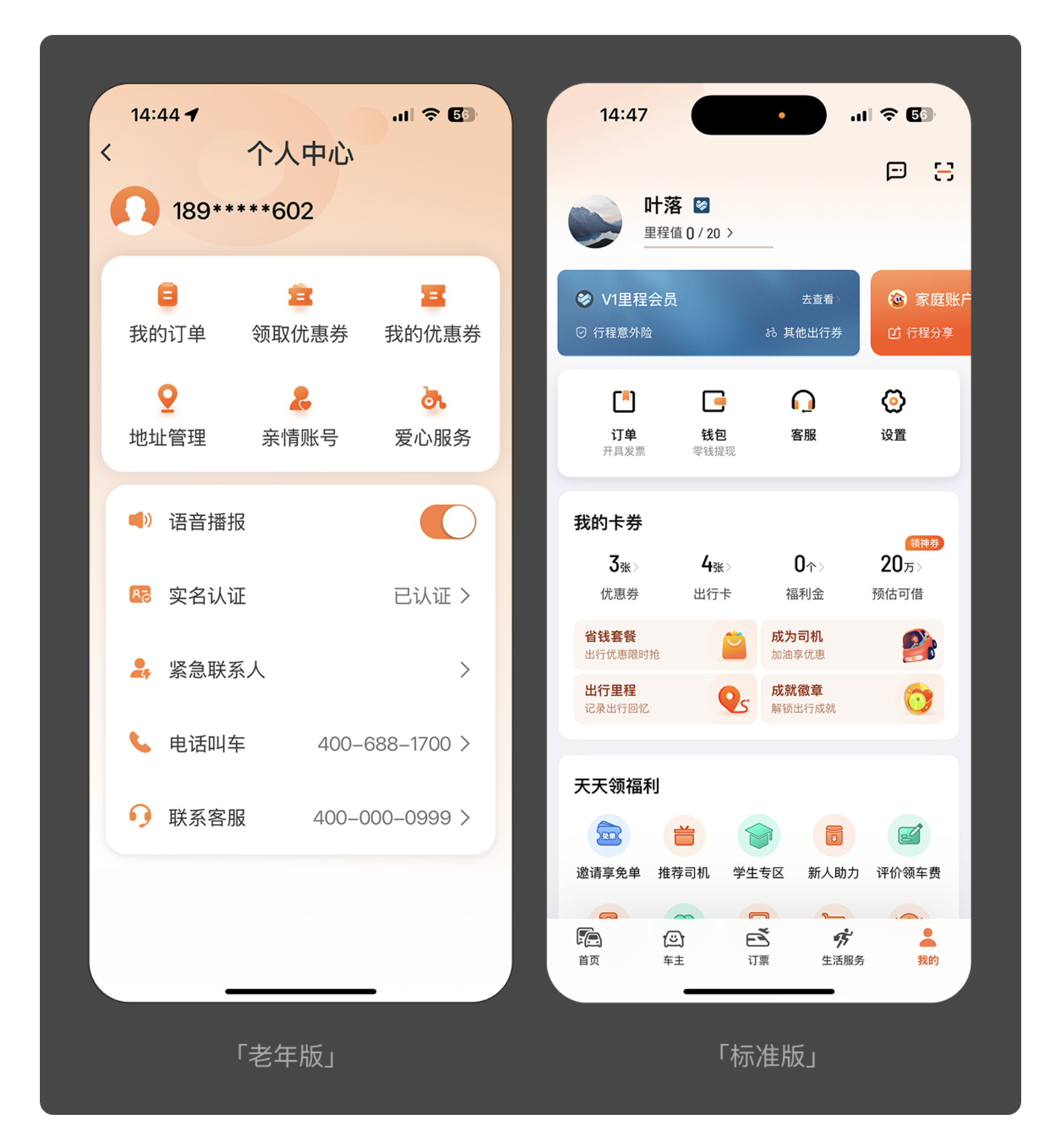 老年用戶的操作耐心與記憶能力相對有限,過多的點擊步驟和冗余功能會顯著增加使用門檻。滴滴老年版的設(shè)計堪稱典范:摒棄了標準版 “輸入目的地 - 選擇車型 - 確認叫車” 的復雜流程,在首頁直接設(shè)置 “呼叫出租車” 核心按鈕,老人無需額外學習,點擊即可發(fā)起叫車,直觀又高效。無獨有偶,QQ 老年版也對 “動態(tài)查看” 功能進行了優(yōu)化,標準版需要兩次點擊才能進入的頁面,老年版只需一次點擊便可直達,大幅提升了操作效率。這種 “減法設(shè)計” 的核心,是剝離非必要功能,讓老人的注意力集中在核心需求上,避免被無關(guān)信息干擾。