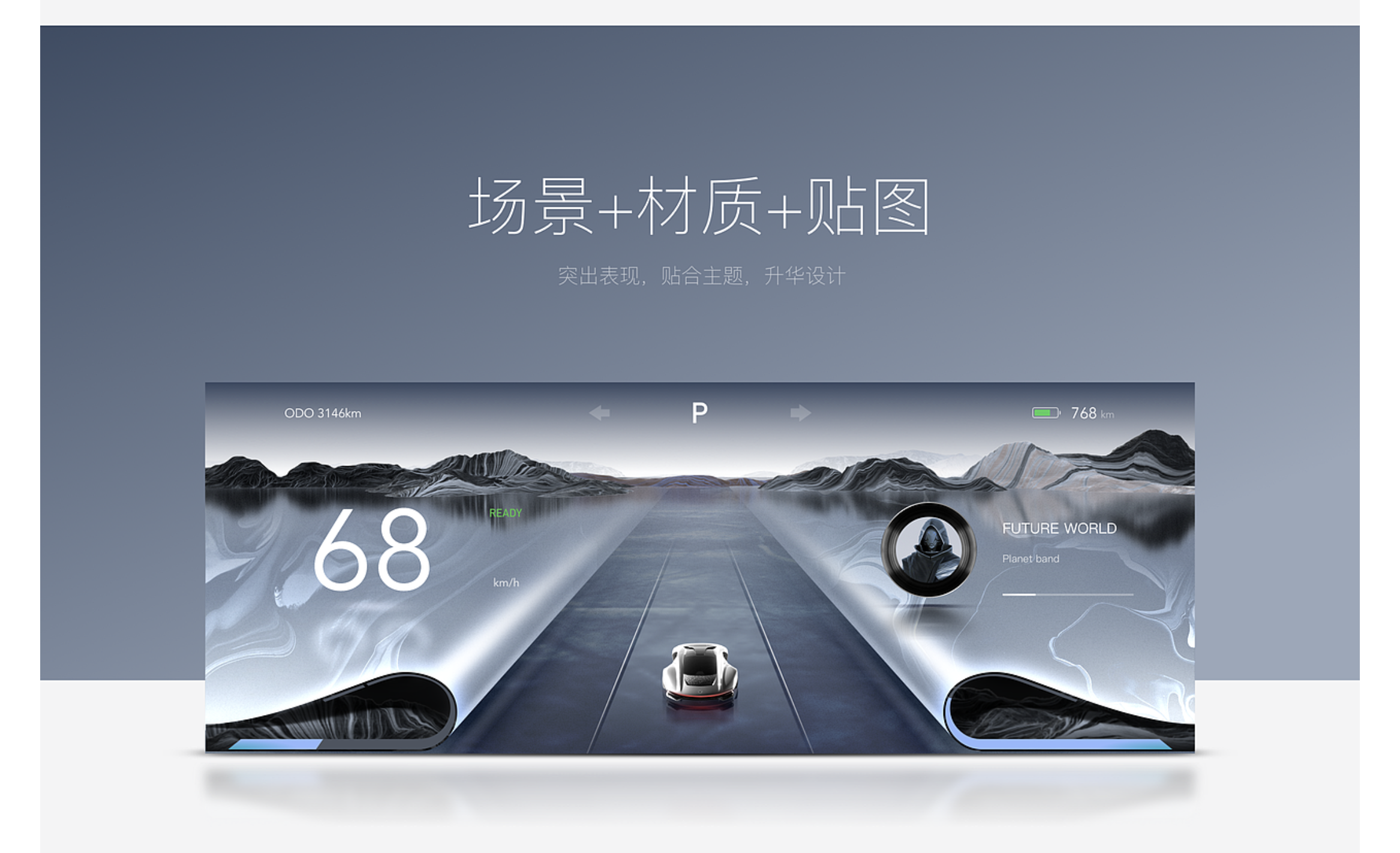 - 皮革質(zhì)感:通過紋理貼圖與柔和光影,傳遞豪華溫潤的質(zhì)感,適合高端車型,可應(yīng)用于儀表邊緣包裹區(qū)域,增加觸感聯(lián)想;