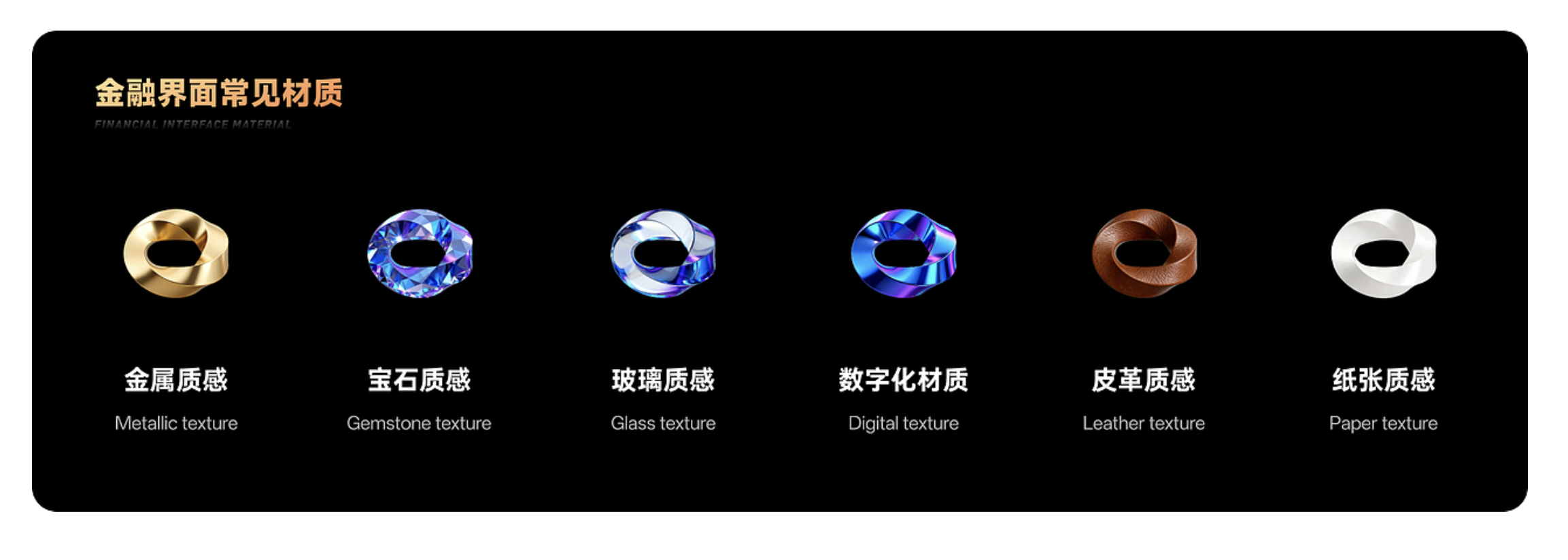 材質(zhì)是品牌理念的無聲傳遞者。傳統(tǒng)金融機構(gòu)傾向于用金屬、皮革等材質(zhì)凸顯歷史積淀與權(quán)威感;互聯(lián)網(wǎng)金融平臺則偏愛玻璃、數(shù)字化材質(zhì),傳遞便捷與智能;高端私人銀行則通過寶石、細(xì)紋皮革等材質(zhì),營造專屬稀缺的奢華感。一套統(tǒng)一且貼合定位的材質(zhì)體系,不僅能快速建立用戶信任,更能形成獨特的品牌視覺標(biāo)識,讓用戶一眼識別 “這是值得托付的平臺”。