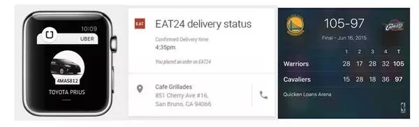 通知會(huì)以更「智能」的形式出現(xiàn),不會(huì)是現(xiàn)在的小廣告推送形式,也不會(huì)是類似 Widget 常駐的形式,而更接近「手表屏幕」大小,按需出現(xiàn),可交互的、功能相對(duì)完整的界面(即使是在手機(jī)上而不是手表上),用戶甚至可以永遠(yuǎn)不打開一個(gè) App,而能夠享受 App 提供的全部功能。