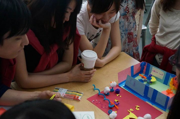 (利用各種材料做手工,展示給別的同學(xué)看,Photo byTatsuhiro Ohtani,VIA同事)