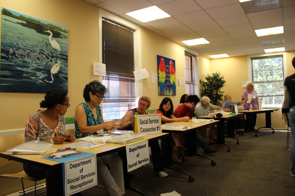 (找來(lái)Stanford別家NGO的義工還有我們VIA的領(lǐng)隊(duì)充當(dāng)“政府部門(mén)”,由于場(chǎng)地原因,這個(gè)Poverty Simulation不是在D.School里面做的,我們借用了校園里隔壁一棟樓的Seminar Room)