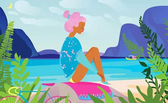 藍色與多種顏色相搭配,盡量選中一個作為主色,比如上圖中以藍色作為主色,無論是遠山天空還是河流,包括人物的衣服都是藍色,與此同時,粉紅作為點睛色。畫面雖然大量運用藍色,會偏向冷調(diào),但此處運用了紅色、黃色和偏暖的綠色就讓畫面的顏色達到了平衡。