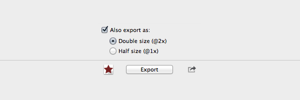 Sketch 擁有最強(qiáng)的導(dǎo)出功能,只要點(diǎn)擊 File > Export 和畫出你所需要的切片(slices) 便可。你也可以用@1x匯出@2x的解像度。相對地,你也可以用@2x導(dǎo)出@1x的圖像。