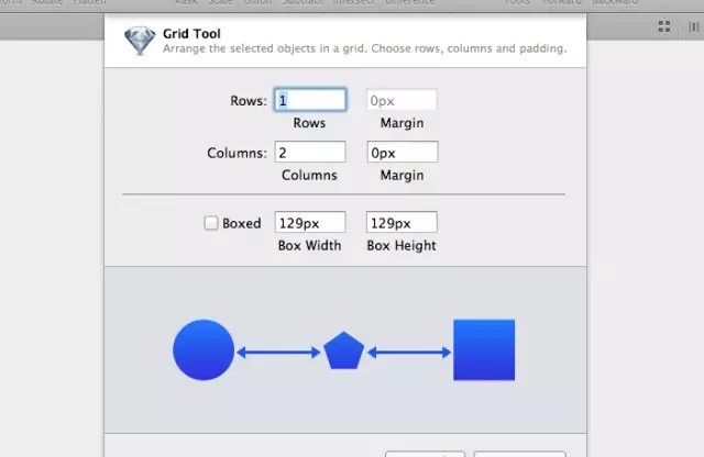 Sketch 有一個稱為 “Create grid” 的功能。點(diǎn)擊工具欄中的四個方格(如圖右上方的圖像),就會跳出一個菜單,在這里你可以設(shè)定你所需的行數(shù)和列數(shù)。