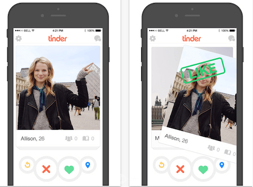 Tinder是一款交友軟件,其頁面設(shè)計(jì)的很簡單但是很精致。主體就是一張附近用戶的照片,你如果喜歡可以就向右滑動(dòng)卡片,不喜歡就想左劃,就是這么簡單。很適合拇指操作。