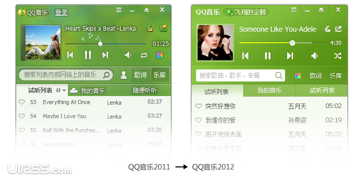 早在2011年7月,QQ音樂2011beta版的發(fā)布便確立了用品牌色–綠色,做為QQ音樂客戶端的默認(rèn)顏色,綠色代表和平、希望、生長(zhǎng)和環(huán)保,對(duì)QQ音樂的品牌形象有積極的正面意義,此外,縱觀競(jìng)品,常見的客戶端配色多為黑和藍(lán),用綠色也較利于提高產(chǎn)品的識(shí)別度。QQ音樂2012賀歲版的視覺,也是圍繞綠色和細(xì)節(jié)進(jìn)行全面的體驗(yàn)優(yōu)化。項(xiàng)目從去年12月31號(hào)開始,進(jìn)行了為期15天的設(shè)計(jì)和快速迭代。