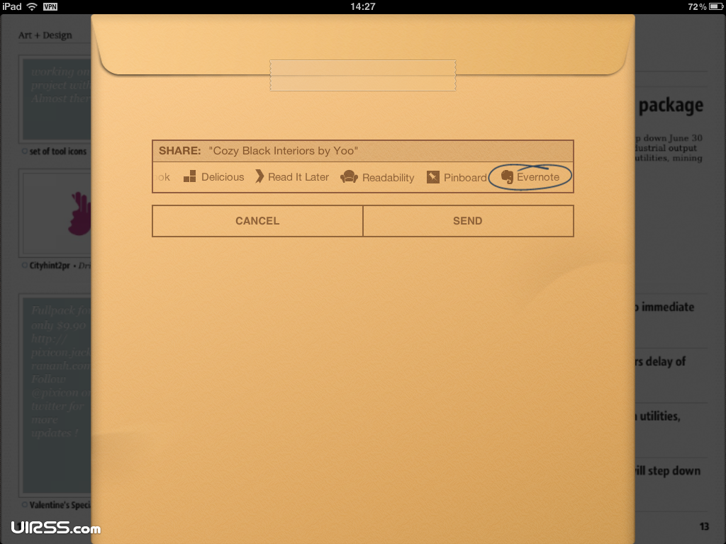 通過信封的隱喻,暗示用戶從閱讀界面進(jìn)入分享界面