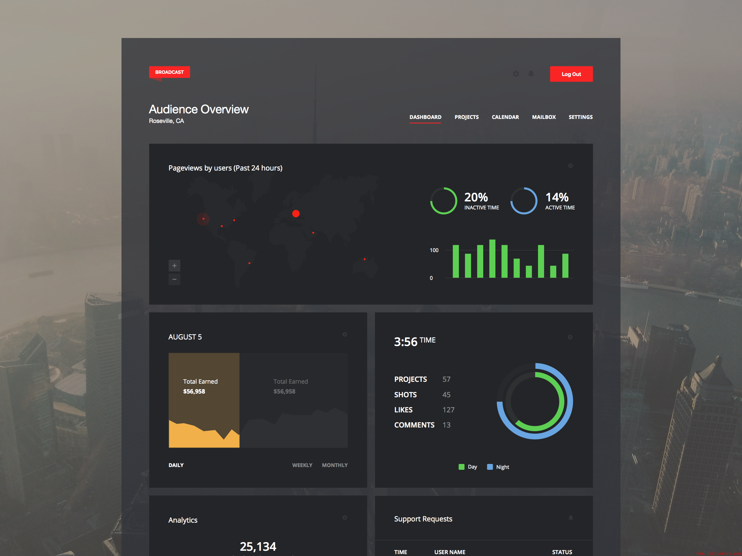 今天跟大家分享的是深色背景的網(wǎng)站界面,深色背景穩(wěn)重大氣,體現(xiàn)科技感。在界面布局方面簡(jiǎn)潔清晰,同時(shí)界面中的表格、按鈕、標(biāo)簽、圖表等控件精致美觀,不管是做web端網(wǎng)頁(yè)、大屏界面,還是手機(jī)app,都可以借鑒。