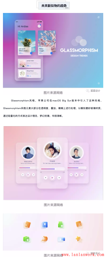 從輕擬物風(fēng)格到Glassmorphism風(fēng)格,擬物化設(shè)計(jì)的演變進(jìn)程已然開啟,未來,無論是3D設(shè)計(jì)的加入還是扁平風(fēng)格的延續(xù),“質(zhì)感”都將成為設(shè)計(jì)過程中被著重強(qiáng)調(diào)的風(fēng)格。