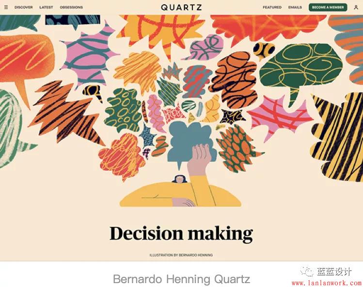 這種風(fēng)格的插畫非常像凌亂的涂鴉,乍看未完成,但所有的細(xì)節(jié)都是經(jīng)過深思熟慮的。重疊的形狀和強(qiáng)烈的色彩讓這些插畫與眾不同,同時(shí)能有效激發(fā)靈感。