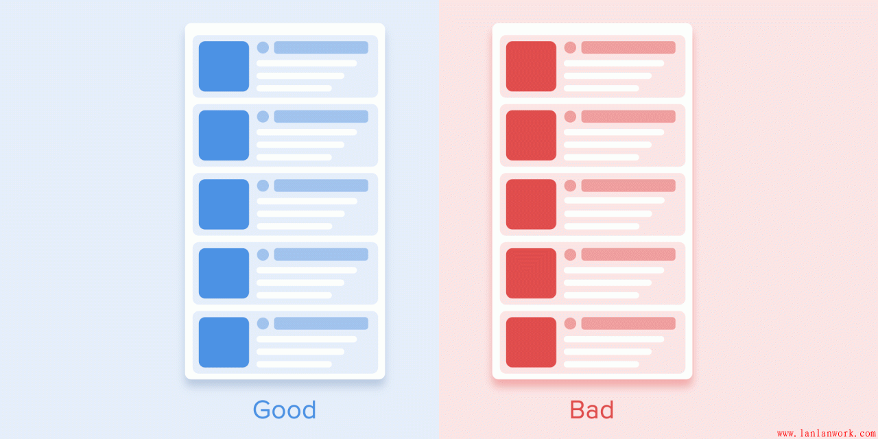 在這種情況下,所有卡片都按一個(gè)相同的流程出現(xiàn),引導(dǎo)用戶注意力在一個(gè)方向上,即從上到下。如果我們不按照這個(gè)順序,用戶的注意力就會(huì)分散,如果所有元素同時(shí)出現(xiàn)也會(huì)很糟糕。