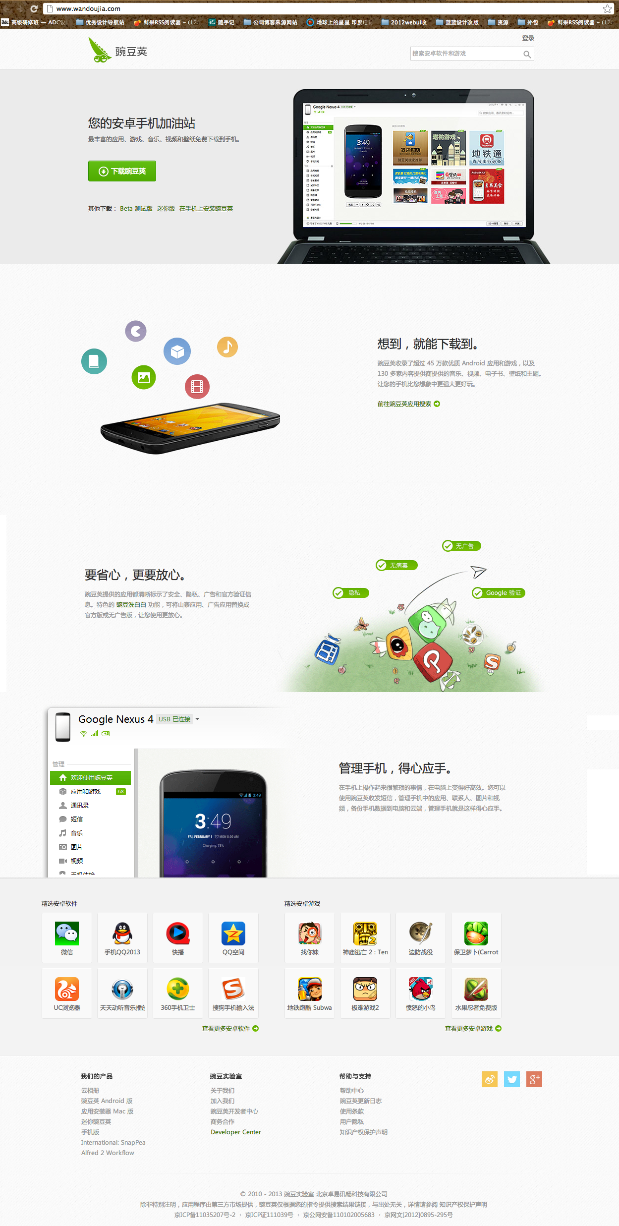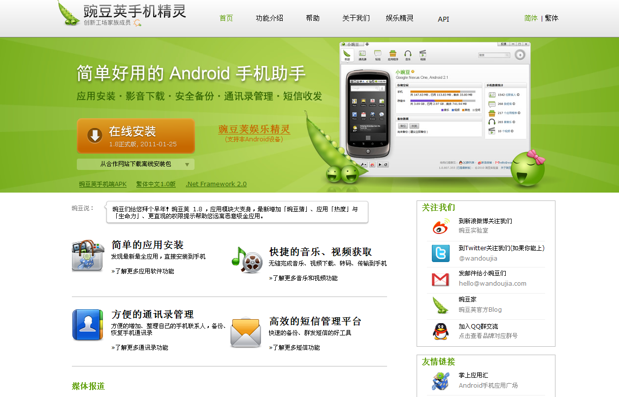 5 豌豆莢手機(jī)精靈官網(wǎng),非常實(shí)用的應(yīng)用軟件類布局,功能、關(guān)注、宣傳、友鏈布局合理,大大的焦點(diǎn)圖上書:在線安裝,用戶下載方便。該有的都有,所以在意料之中,相對(duì)平常。
