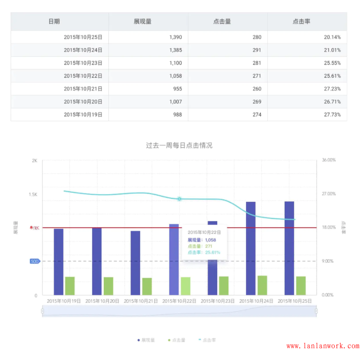 數據產品不要試圖去掩蓋問題,而要反映真實數據,暴露問題,并且和用戶一同解決。比如對數據閾值進行監(jiān)測,預警線就是很友好的可視化方式。