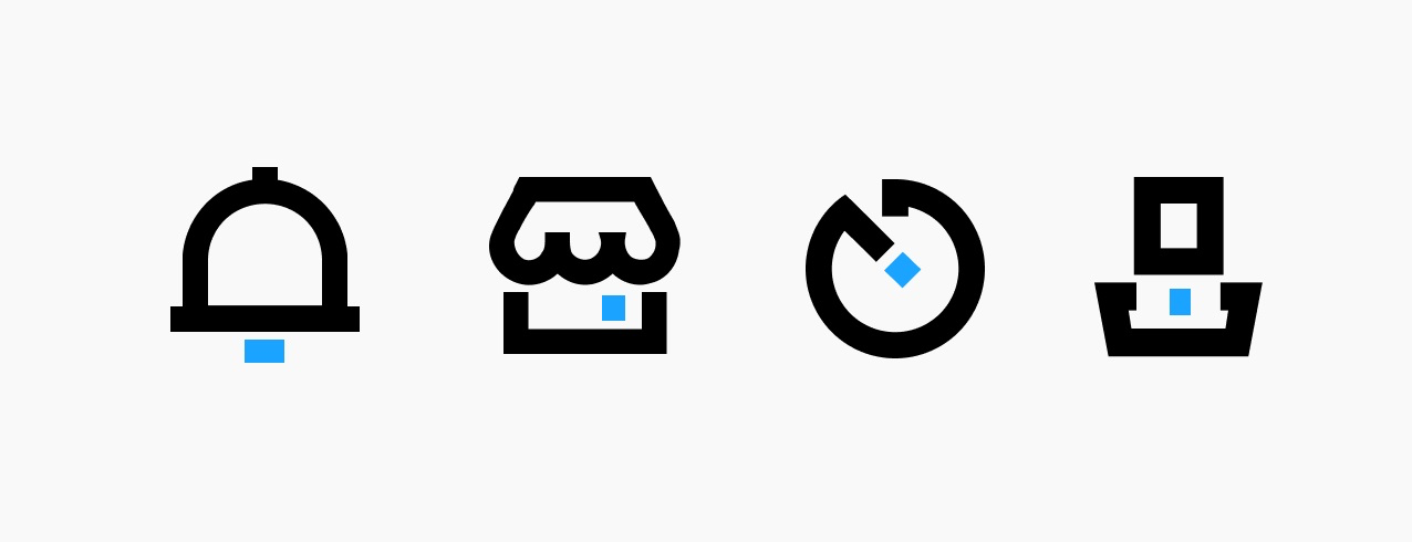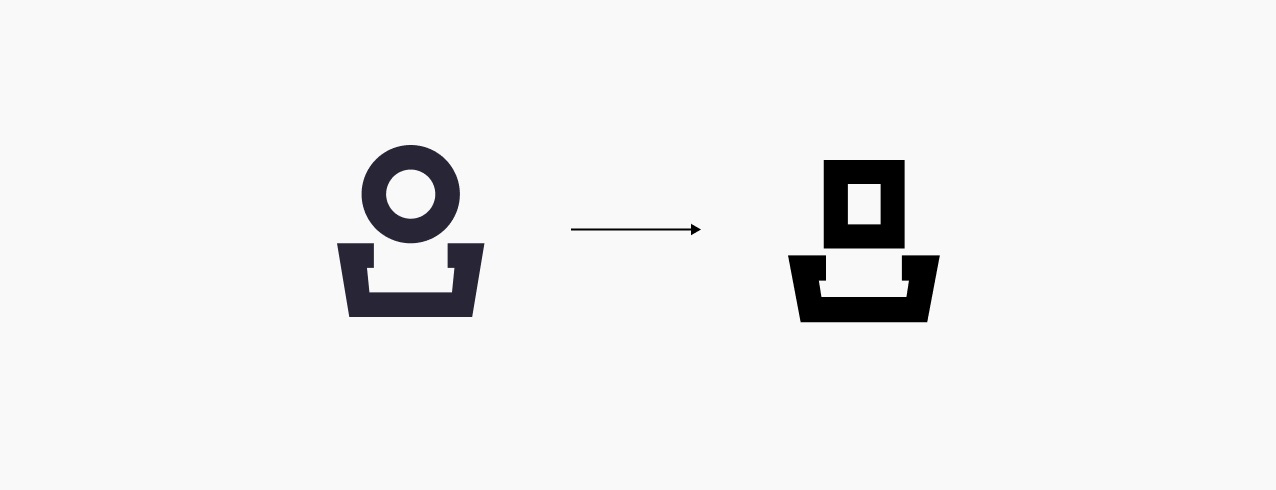 大家要明白,雖然我們可以直接下載圖標素材,而且可以通過審美讓他們變得相對精致統(tǒng)一,但素材畢竟還是通用的,我們還是需要融入自己的想法和設計,不能完全依賴素材,舉一個最簡單的例子,“我的”這個圖標,他的腦袋是圓形的,那我們是不是可以把他改成矩形的?
