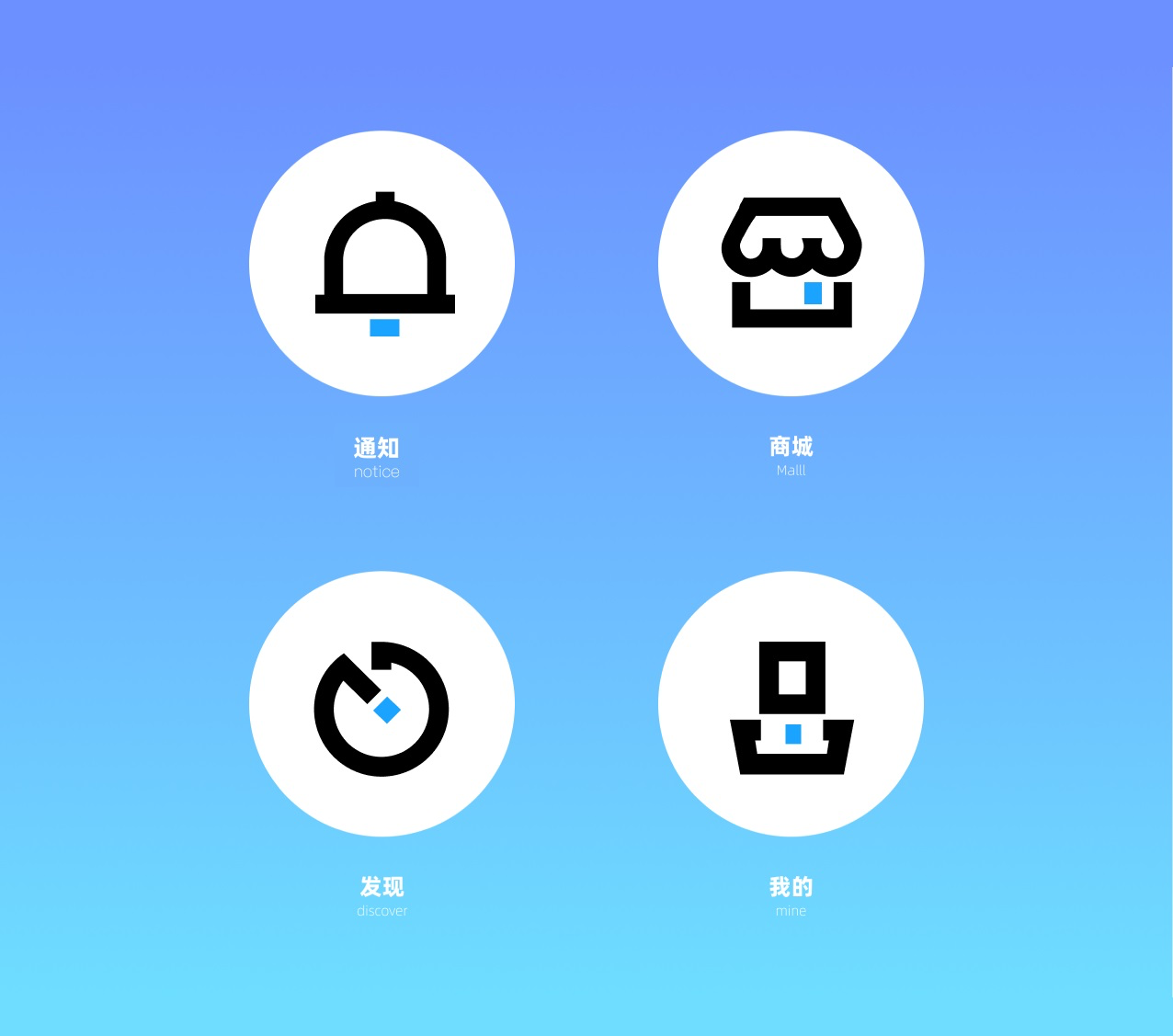 我們這次做的圖標分別為:通知、商城、發(fā)現(xiàn)、我的。