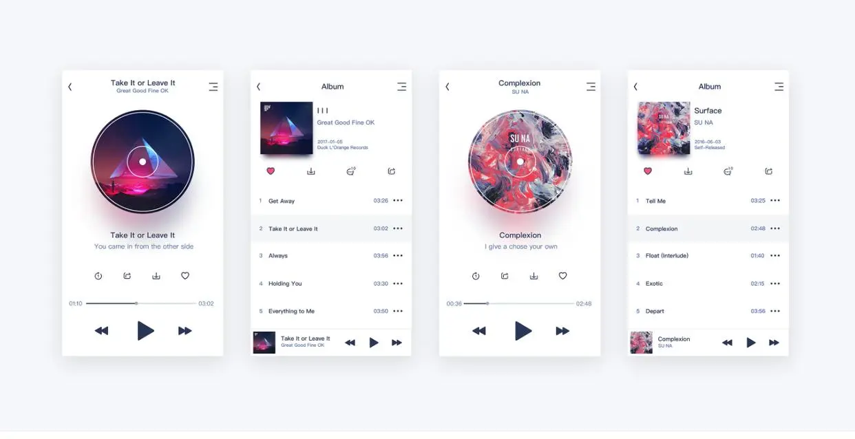 相比較網(wǎng)格式列表與垂直式列表,前者大多是用于展示文字信息,界面會(huì)顯得比較干凈有效。后者則更具情感魅力,會(huì)讓界面更加富有感染力。