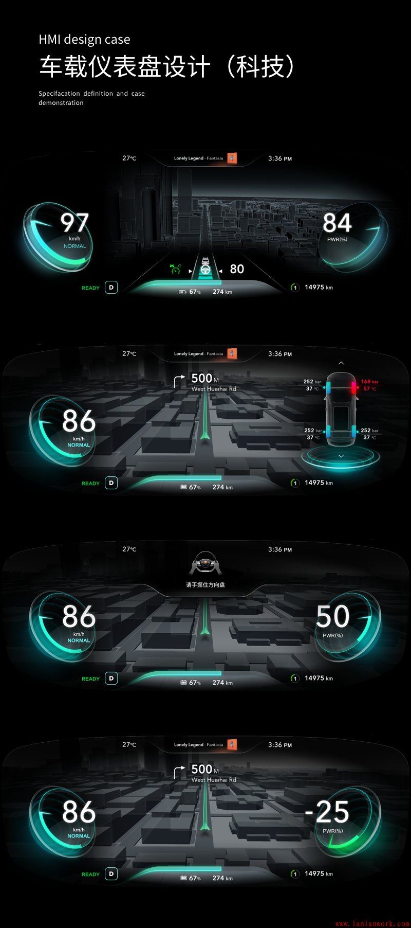 視覺(jué)層面上,一般來(lái)說(shuō)識(shí)別度比較重要,能更直觀的展示模型可視化信息就好,但是可視化信息的表現(xiàn)形式可以作為視覺(jué)設(shè)計(jì)的重點(diǎn),可以是線性模型,也可以是白模等等,要去契合車(chē)機(jī)的主題、顏色、概念,又要達(dá)到可視化的要求。