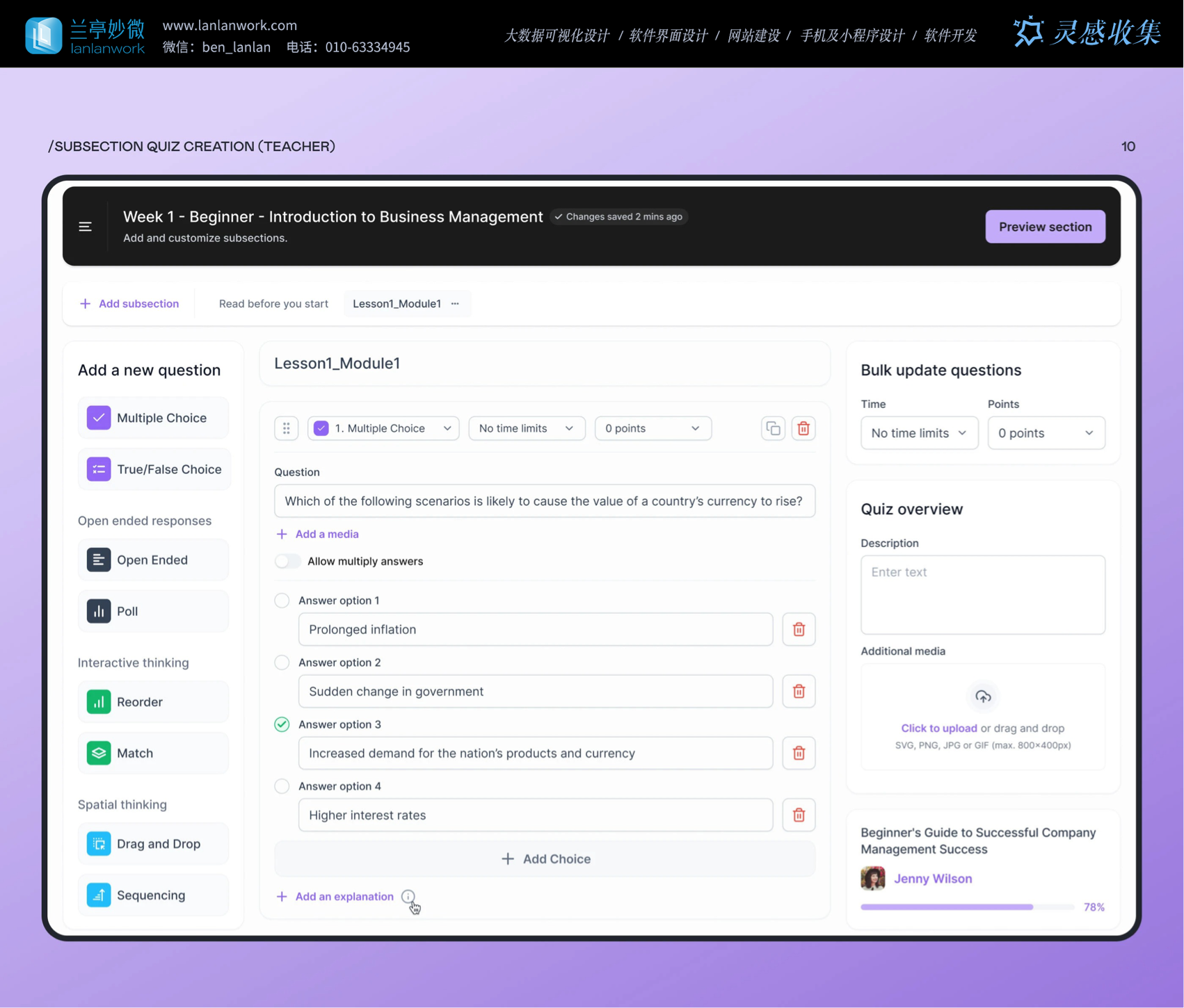 交互設(shè)計(jì)處處為用戶考慮。就說(shuō)測(cè)驗(yàn)功能,學(xué)生答題頁(yè)有 "Retakeequiz (重新測(cè)驗(yàn))""Next lesson (下一課)"