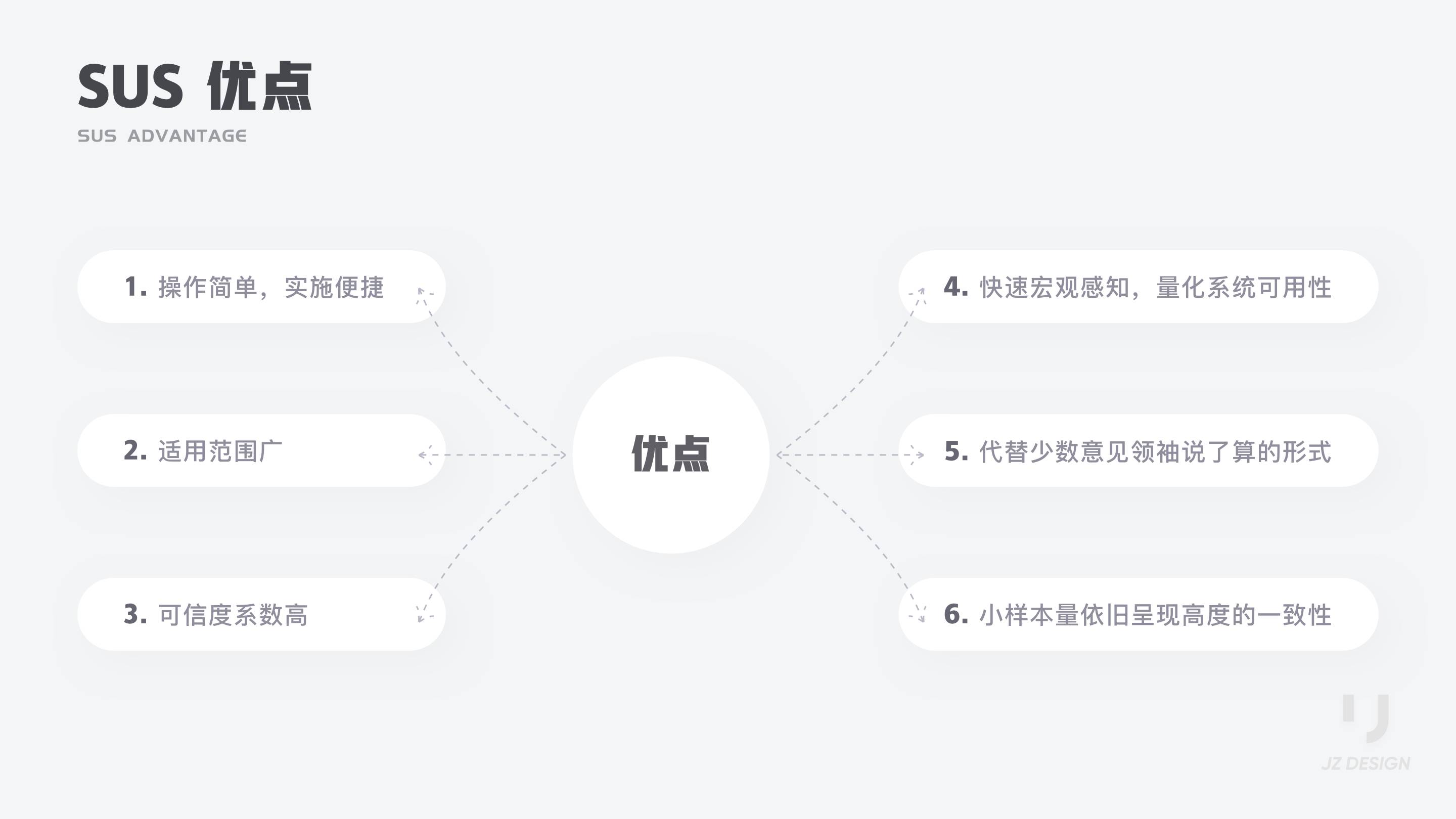 SUS 全稱 System Usability Scale ,系統(tǒng)可用性量表。SUS最初是Brooke于1986年編制,可以科學(xué)地量化用戶體驗,用于完成一系列任務(wù)場景后,對產(chǎn)品或系統(tǒng)整體宏觀的感知可用性測量。